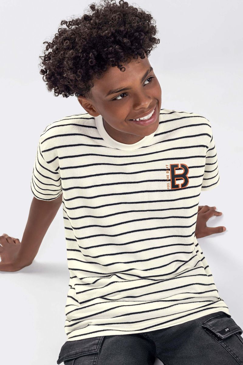 JuvenilMasculino JuvenilCamisetas MasculinoCamiseta Juvenil Menino Listrada Beats Bege
