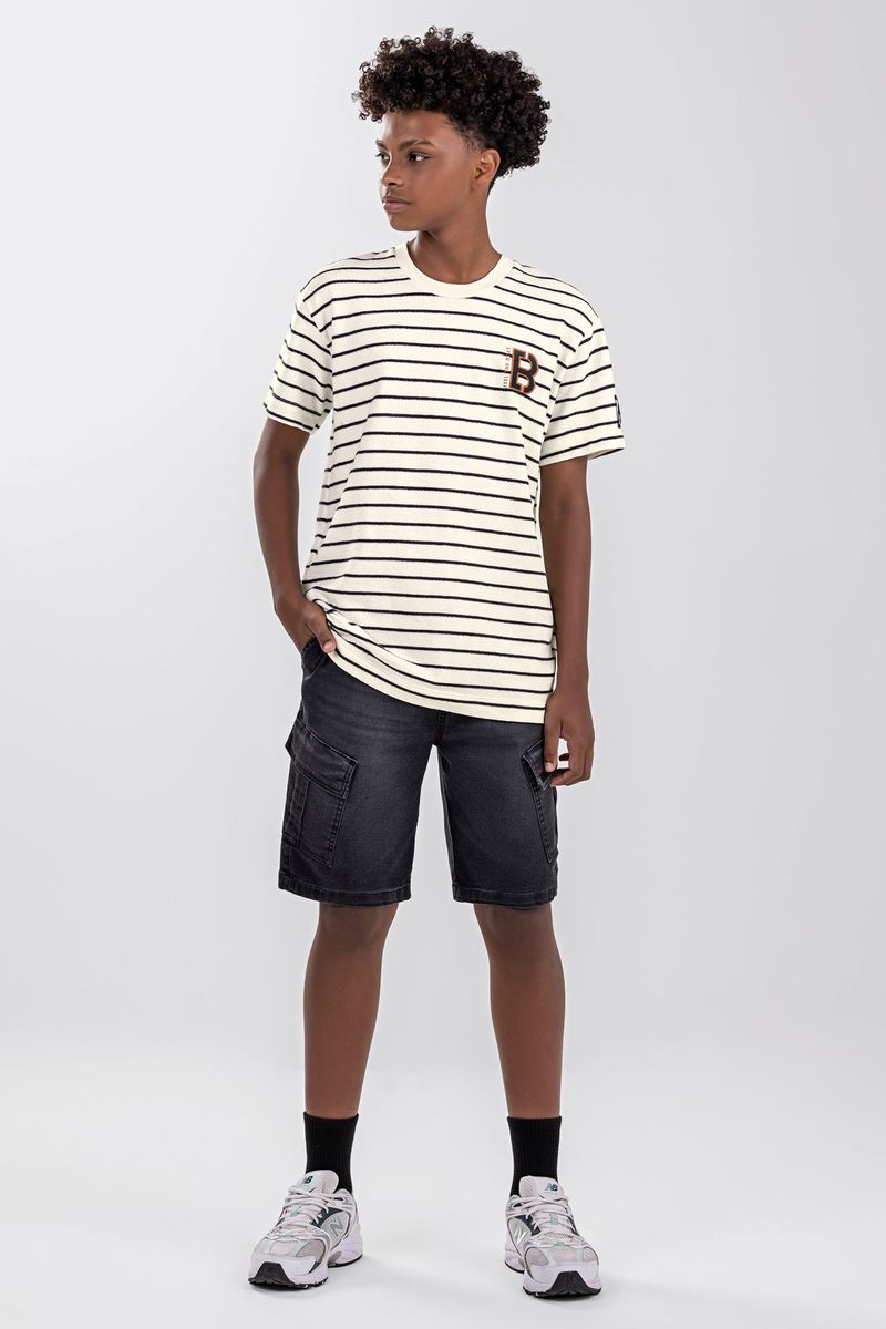 Camiseta Juvenil Menino Listrada Beats Bege REF: 261052-2037