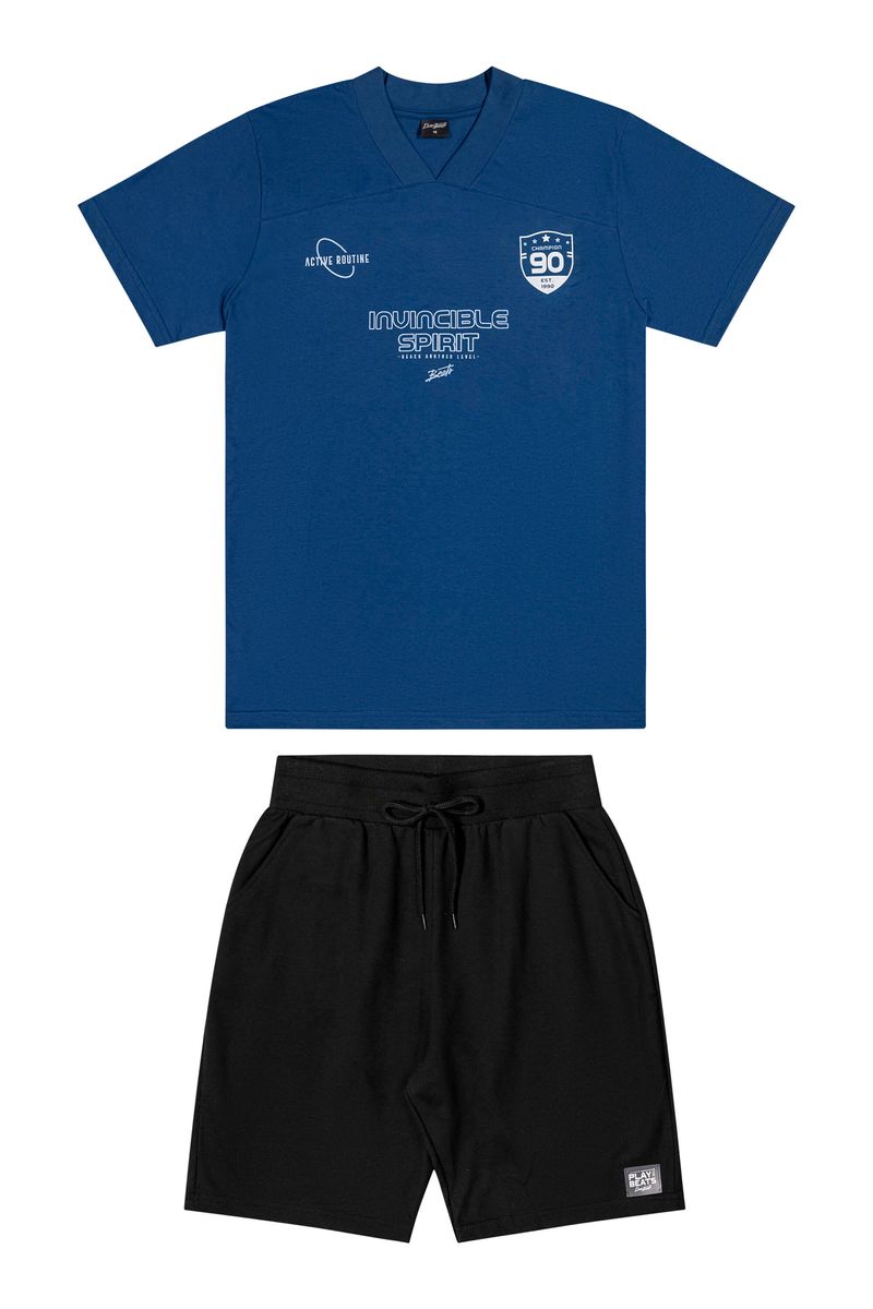 Conjunto Curto Juvenil Menino Moletom Sport Beats Azul REF: 261061-6025