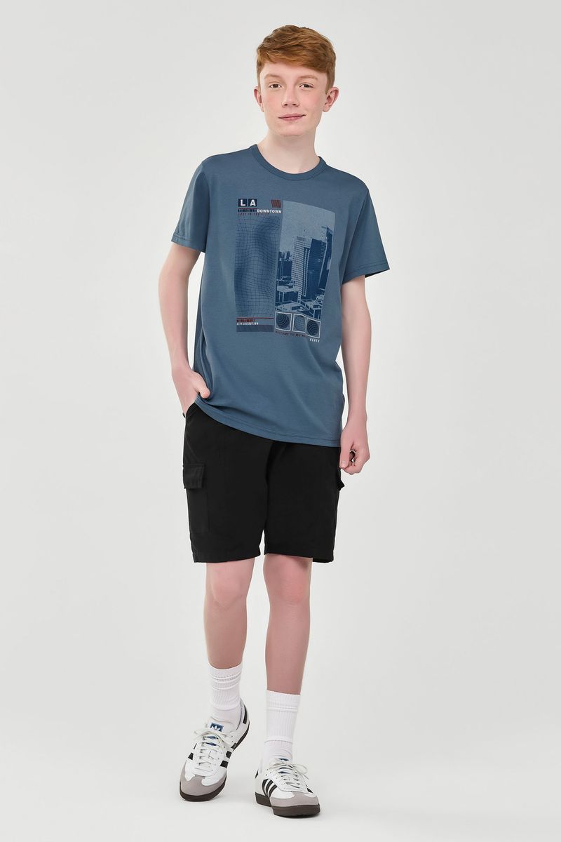 Camiseta Juvenil Menino Estampa Urbana Beats Azul REF: 261075-6011