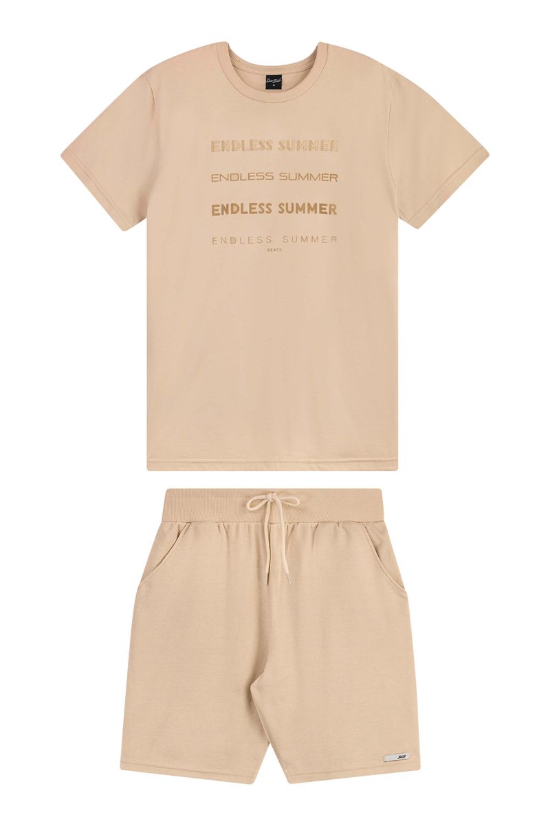 • Conjunto composto por camiseta e bermuda • Feito em meia malha e moletinho dublado • Possui mangas curtas • Possui estampa tropical • Possui elástico no cós • Possui bolsos • Ideal para momentos de lazer, viagens ou produções urbanas