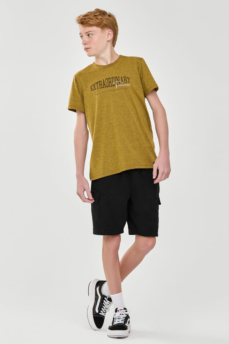 • Feita em malha mescla colorida • Possui mangas curtas • Possui estampa frontal • Ideal para passeios ou viagens