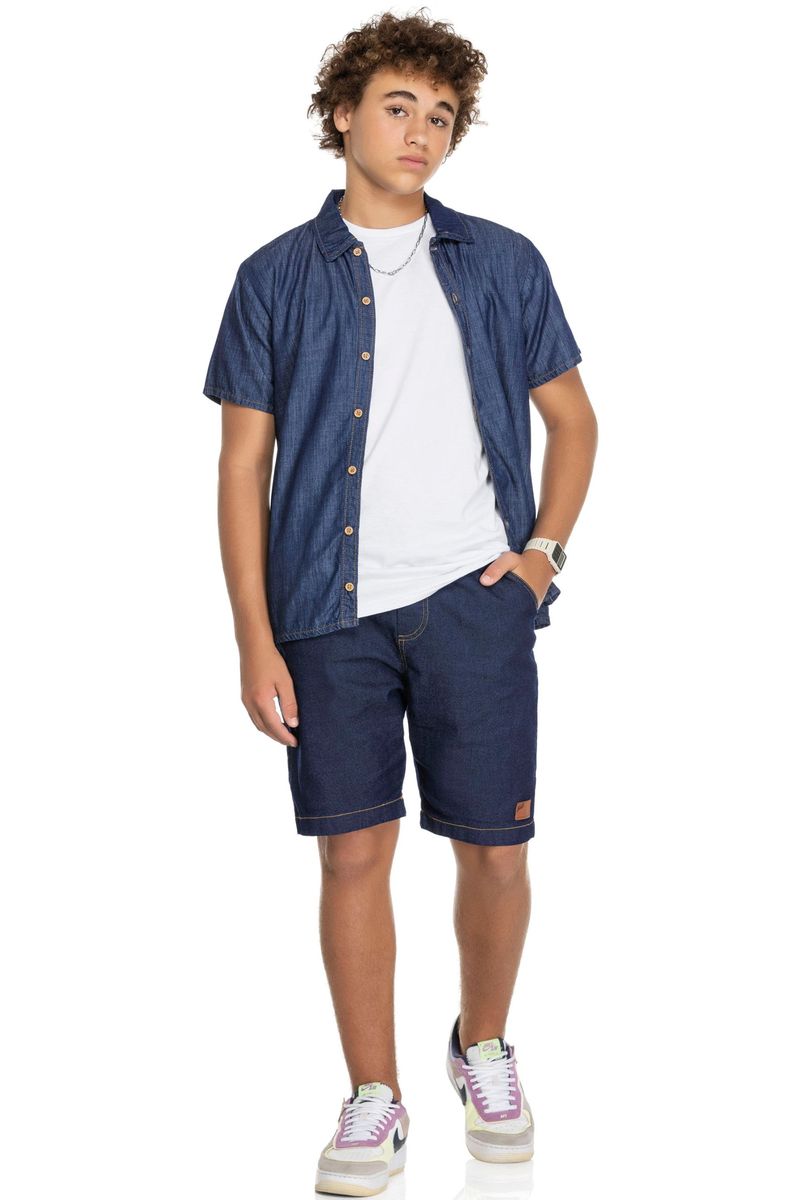 Camisa Juvenil Menino Beats Jeans com Botões Elian Azul Marinho REF: 26913-6056