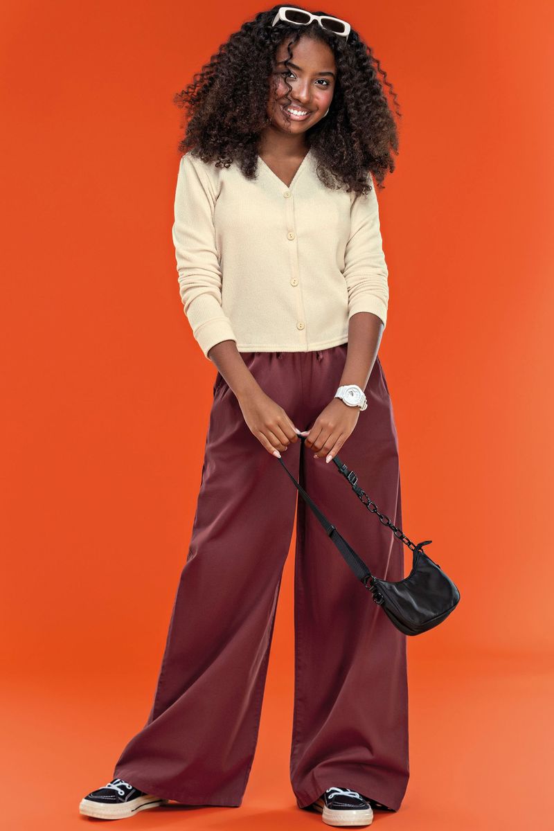 JuvenilFeminino JuvenilCalças FemininoCalça Juvenil Menina Pantalona Sarja Elian Beats Marrom