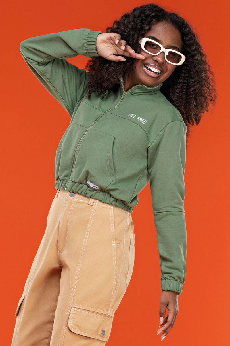 JuvenilFeminino JuvenilCasacos e Jaquetas FemininoJaqueta Juvenil Menina Moletom Feel Free Elian Beats Verde