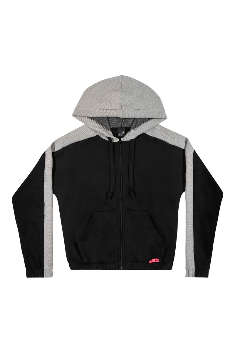 Jaqueta Juvenil Menina em Moletom Bicolor Elian Beats Preto REF: 271411-7001