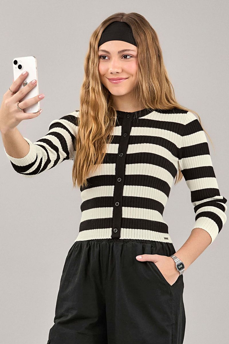 Cardigan Juvenil Menina Tricot Listrado Beats Preto REF: 271574-7001
