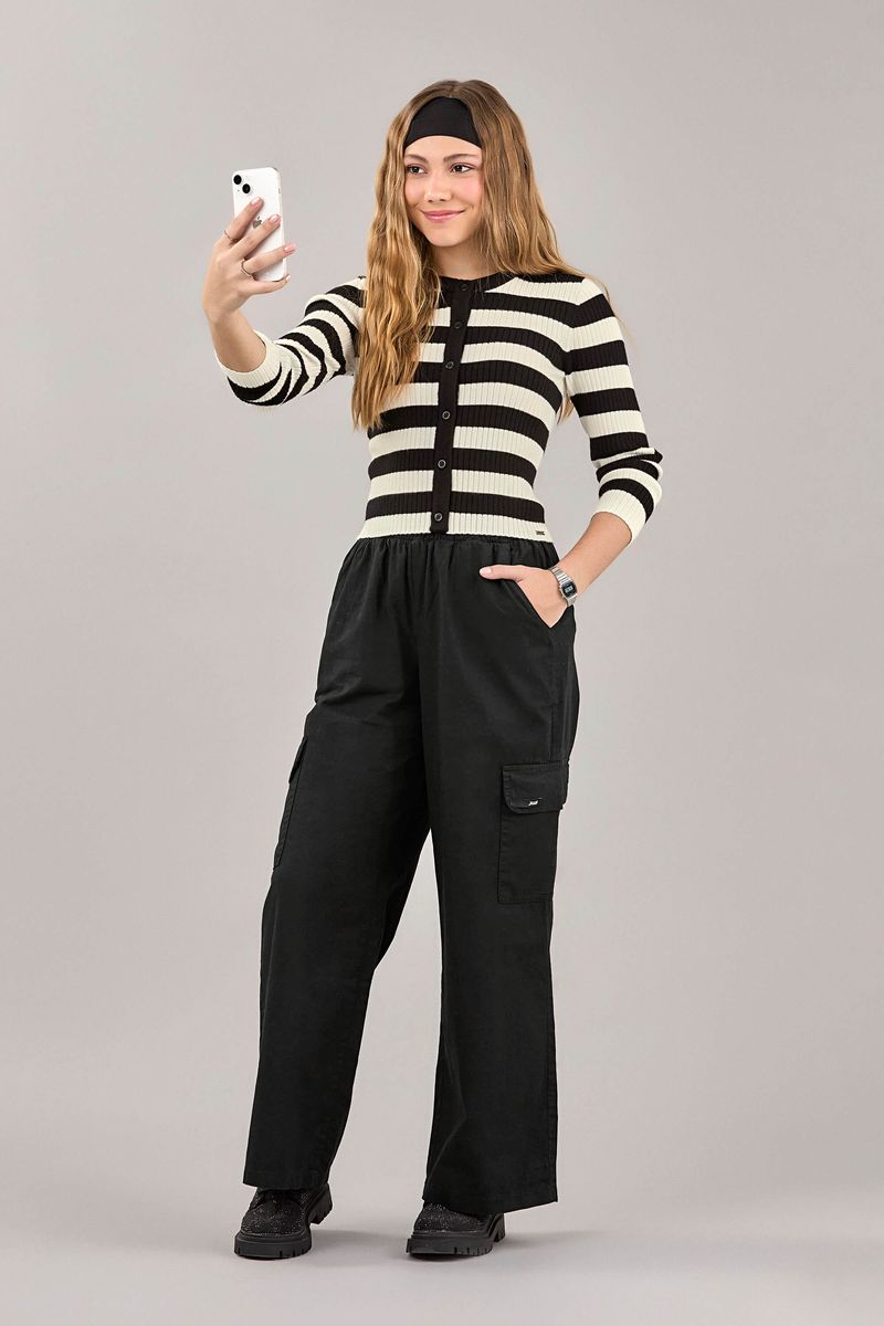 Calça Juvenil Menina Pantalona Cargo Beats Preto REF: 271581-7001