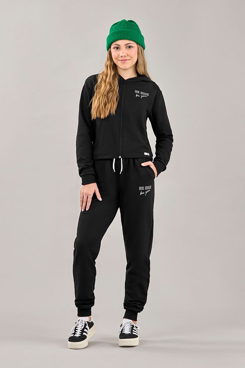 Conjunto Juvenil Menina Jaqueta e Calça Moletom Beats Preto REF: 271584-7001