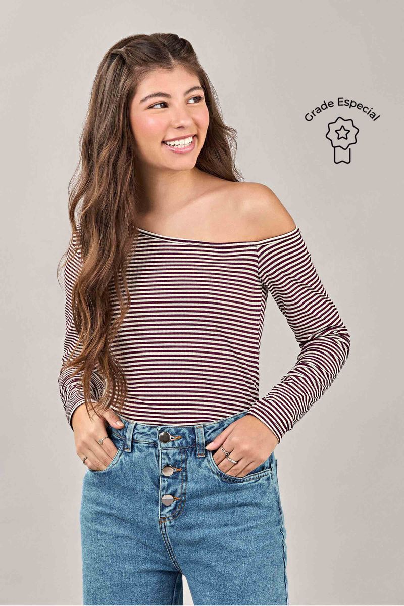 JuvenilFeminino JuvenilBlusas FemininoBlusa Cropped Juvenil Menina Listrada Beats Bege