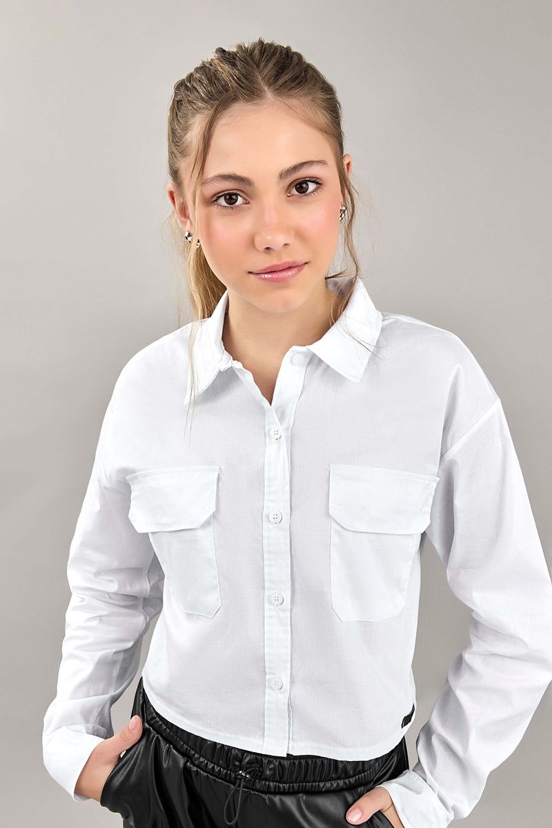 Camisa Juvenil Menina Cropped Beats Branco REF: 271625-2001