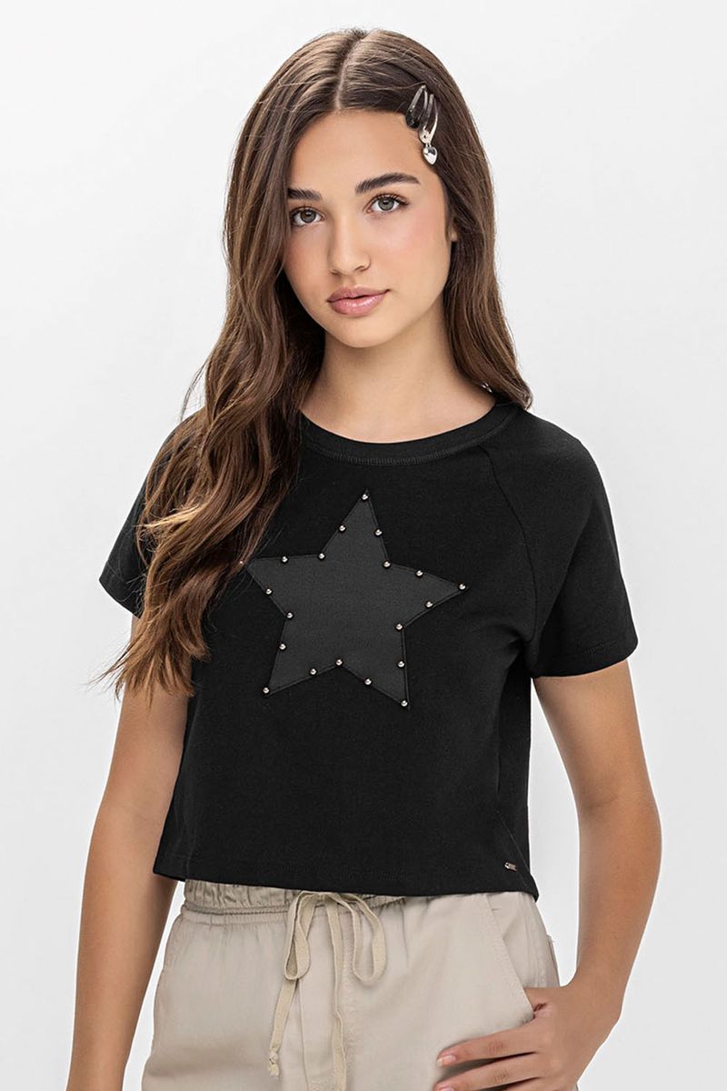 Blusa Cropped Juvenil Menina Estrela Beats Preto REF: 271635-7001