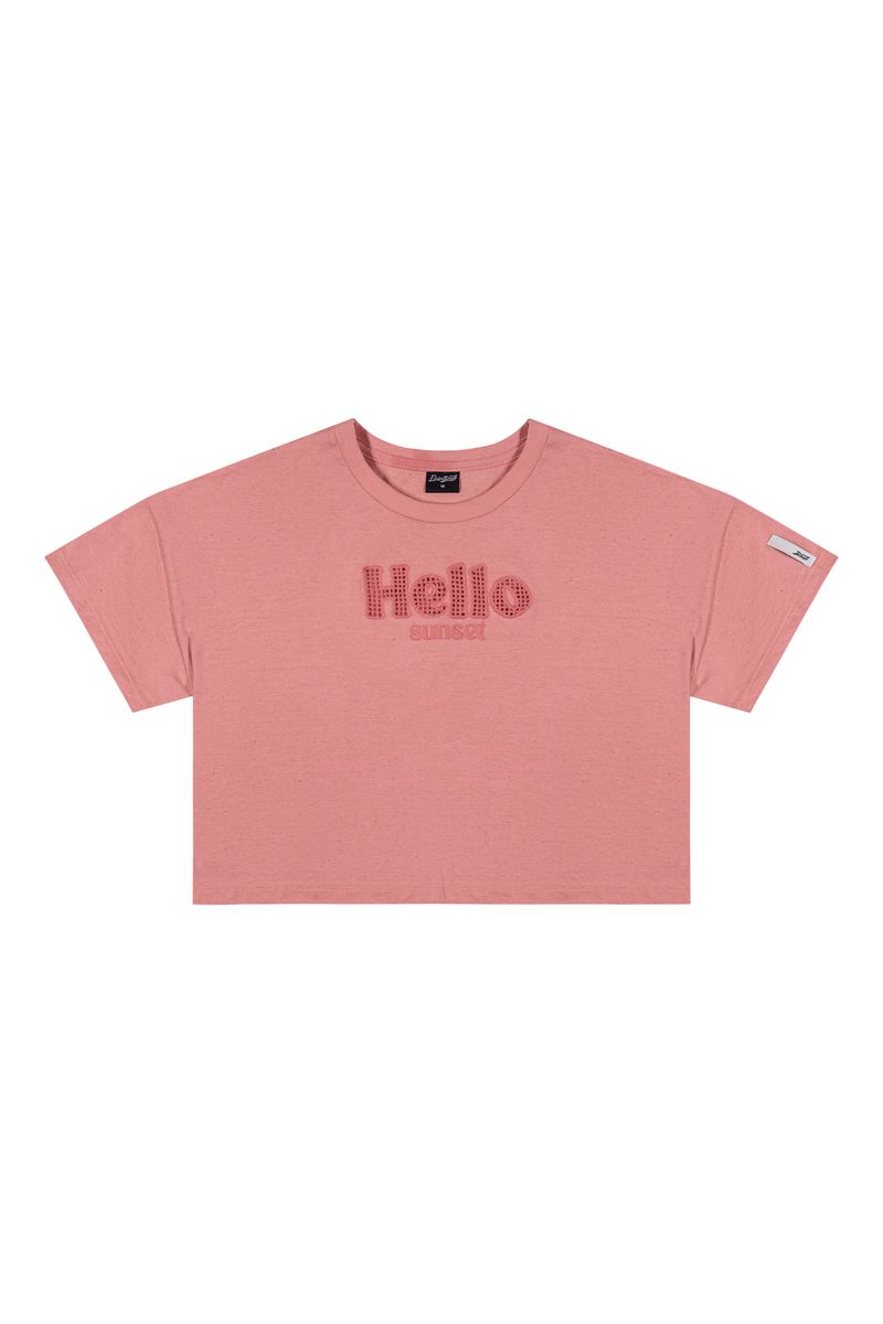 Blusa Cropped Juvenil Menina Bordada Beats Rosa REF: 271638-4118