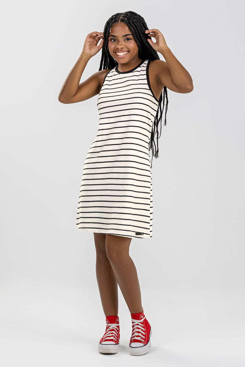 Vestido Juvenil Menina Listrado Beats Bege REF: 271672-2037