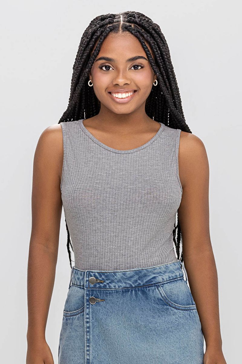 Body Juvenil Menina Canelado Sem Manga Beats Cinza REF: 271686-8021