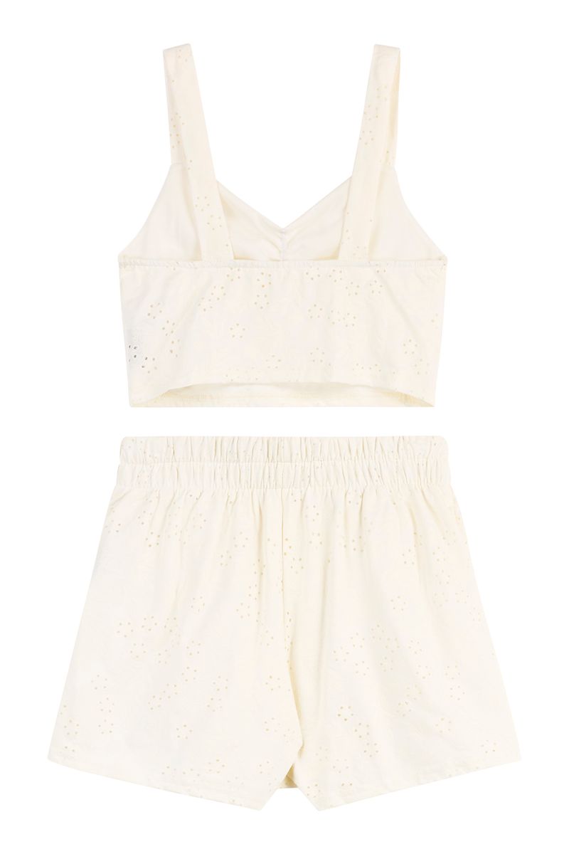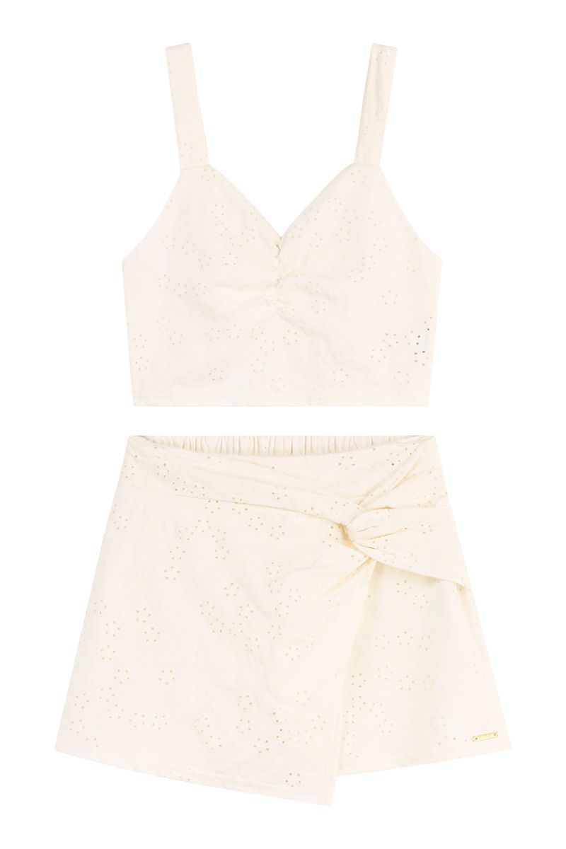 • Conjunto composto por regata e short saia • Feito em meia malha de algodão devorê • Possui comprimento curto • Possui alças • Possui padronagem floral vazada • Elástico no cós • Possui frente transpassada com detalhe torcido • Possui forro • Ideal para passeios ao ar livre ou encontros com as amigas