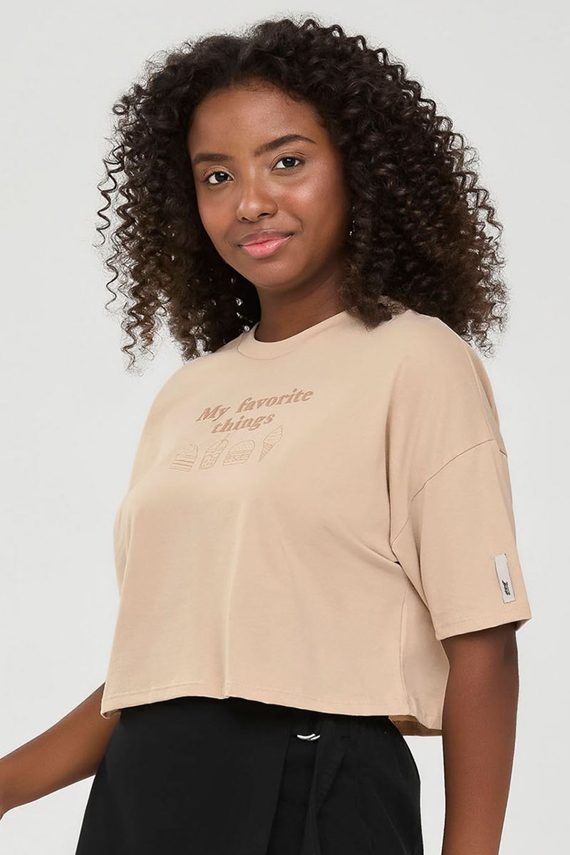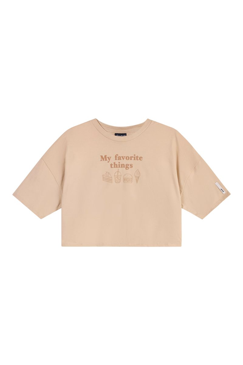 JuvenilFeminino JuvenilBlusas FemininoBlusa Cropped Juvenil Menina Estampa Puff Beats Bege