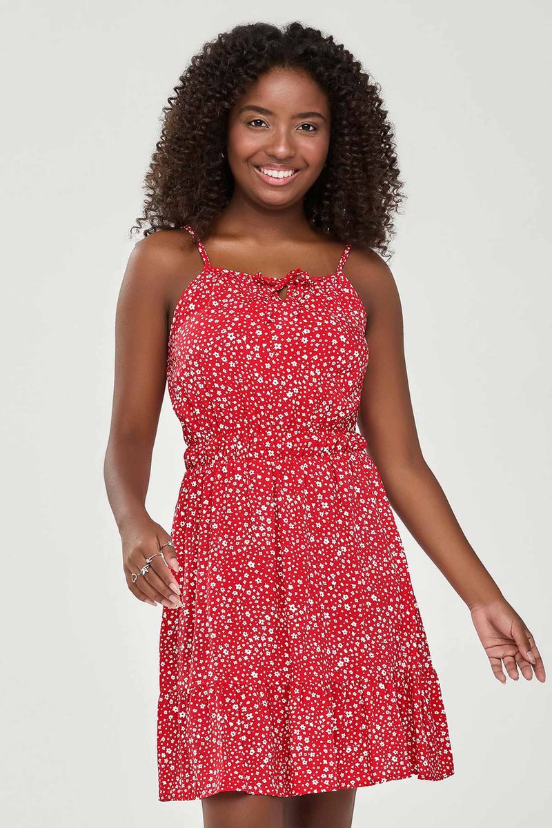 • Feito em tecido de viscose estampado • Possui comprimento curto • Possui modelagem soltinha com babados • Possui alças ajustáveis • Possui estampa floral • Possui abertura no decote com amarração • Ideal para passeios em dias de verão