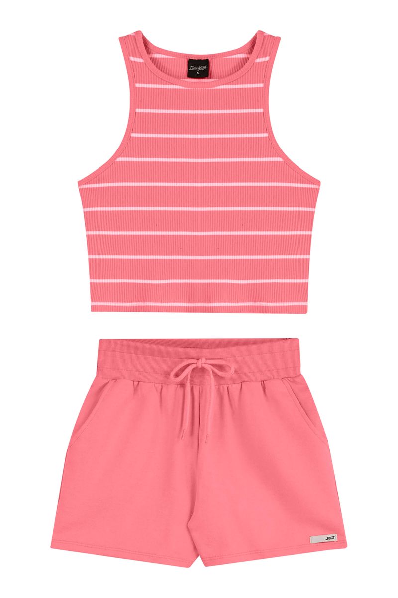 Conjunto Juvenil Menina Listrado Básico Beats Rosa REF: 271728-4844