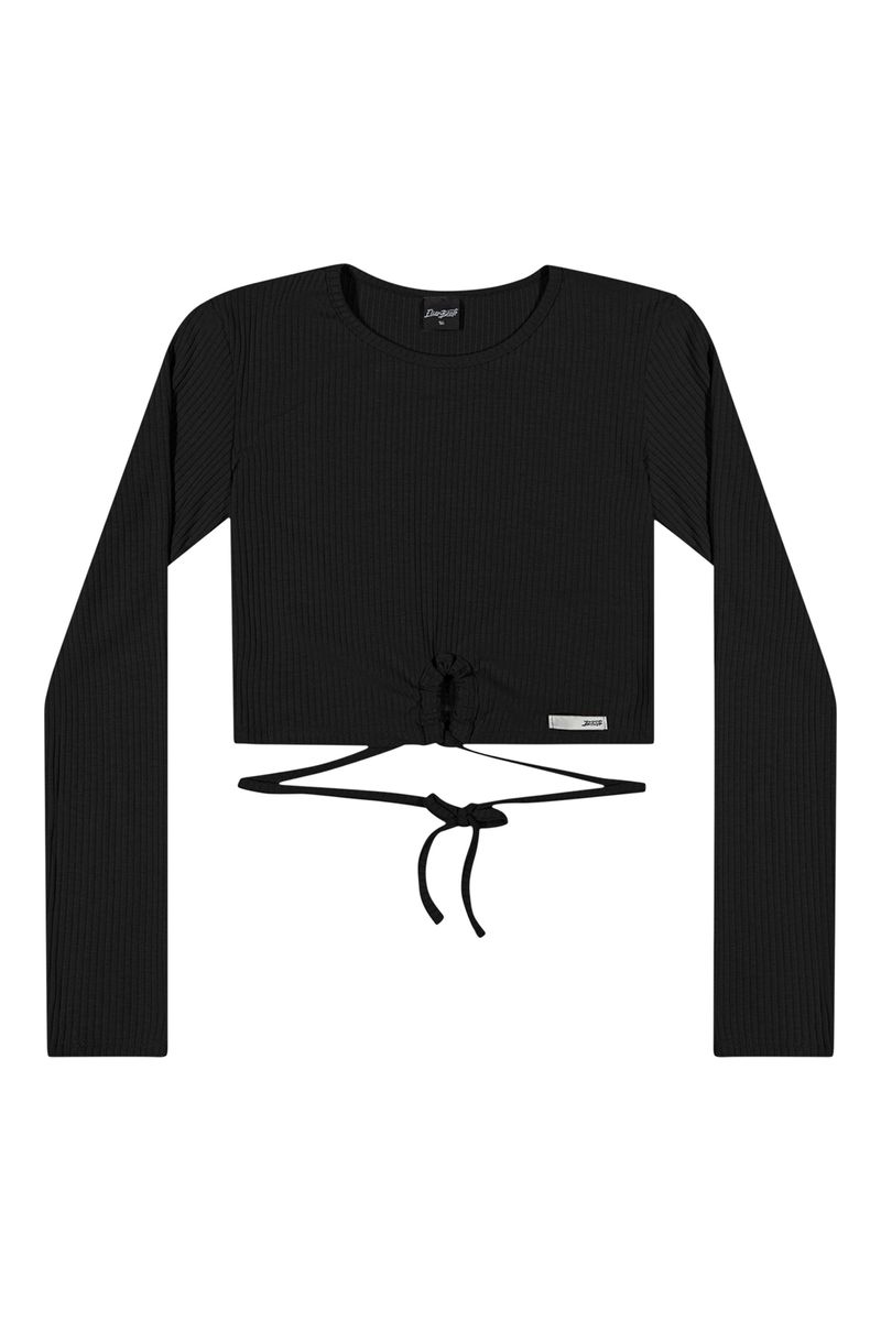 • Feita em malha canelada • Comprimento curto • Possui mangas longas • Detalhe com abertura frontal • Detalhe transpassado com amarração • Ideal para um encontro com a galera