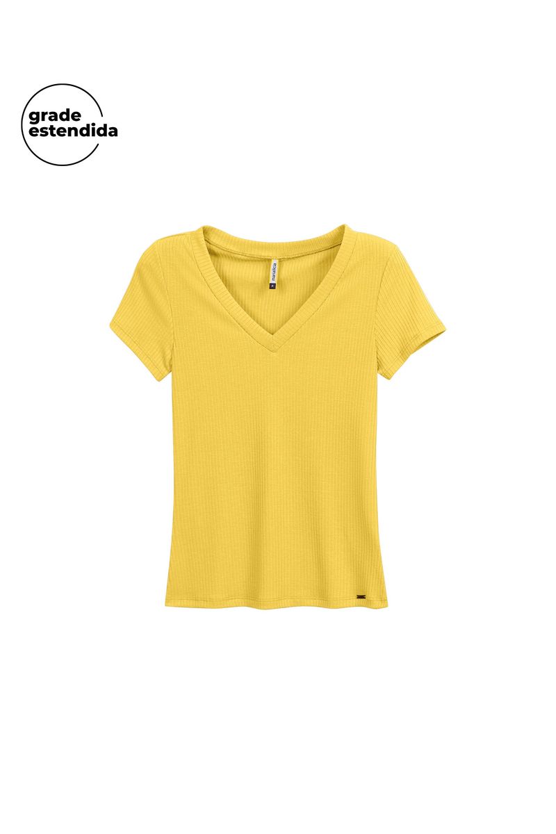 AdultoFemininoBlusas FemininoBlusa Feminina Básica Gola V Marialícia Amarelo