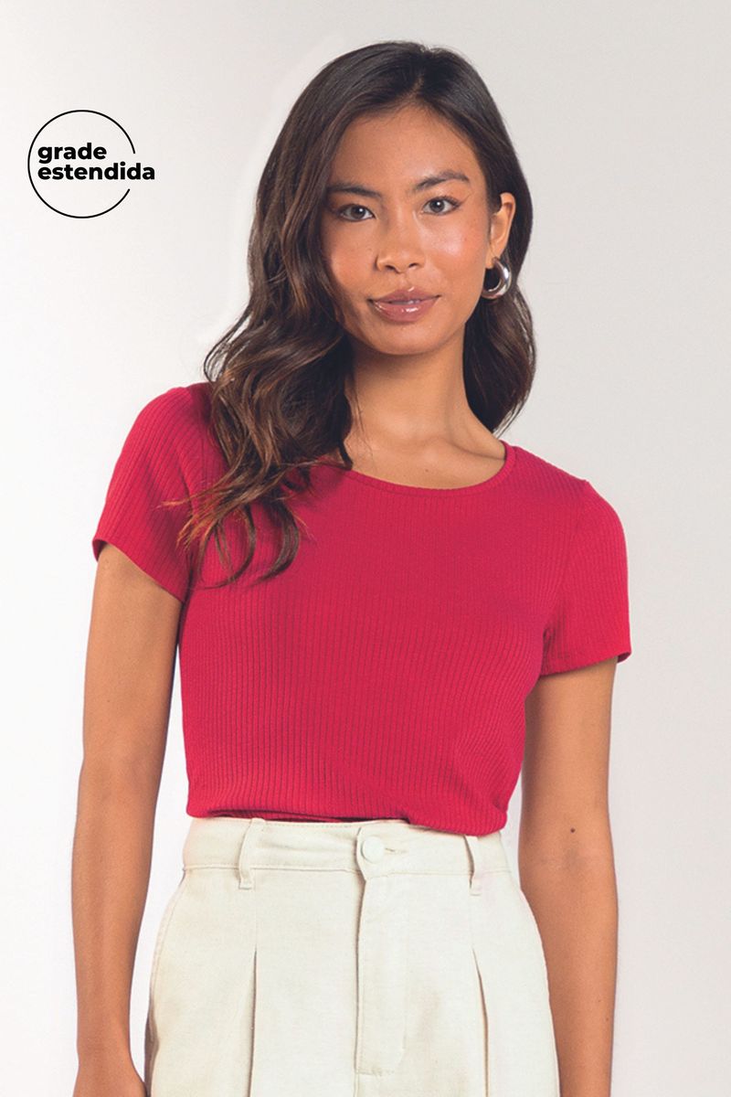 AdultoFemininoBlusas FemininoBlusa Feminina Básica Gola Careca Marialícia Vermelho
