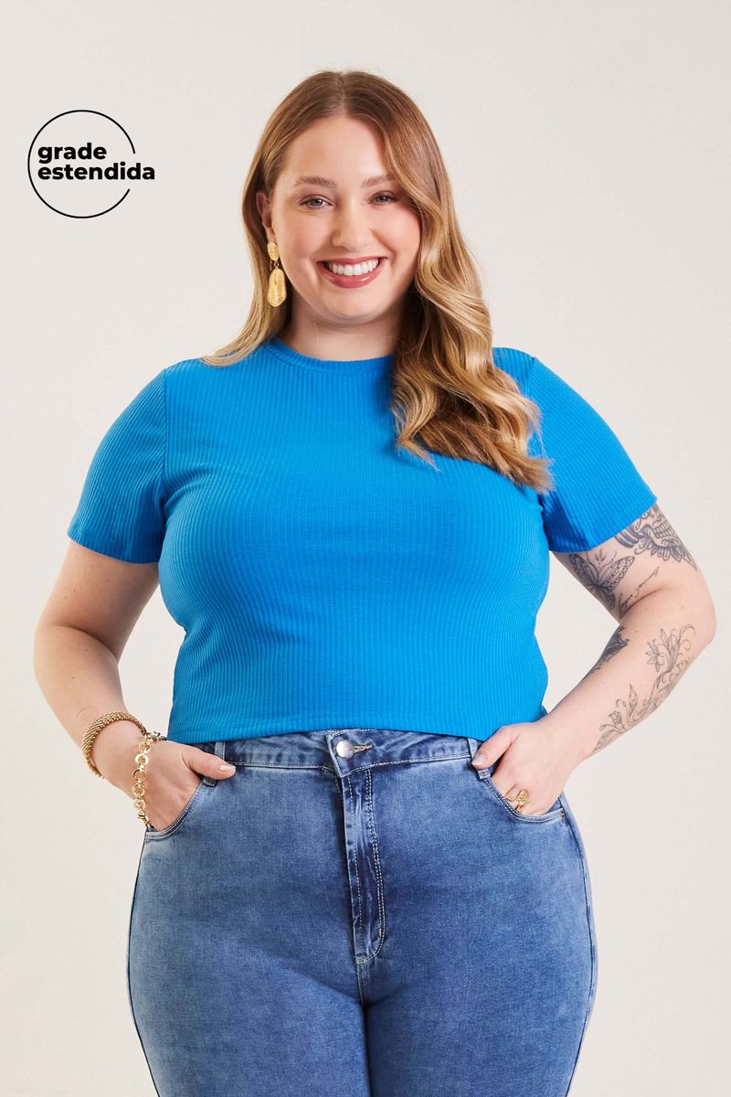 AdultoFemininoBlusas FemininoBlusa Feminina Básica Canelada Marialícia Azul