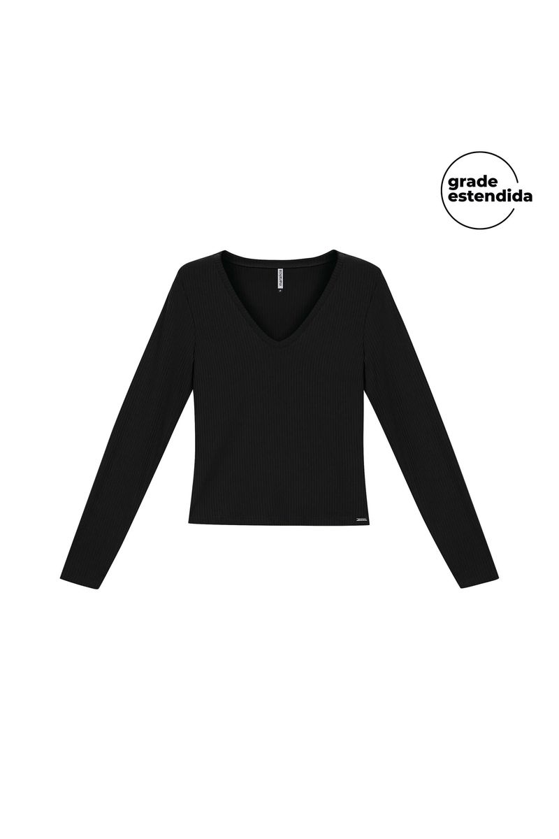 Blusa Feminina Canelada Decote V Marialícia Preto REF: 52226-7001
