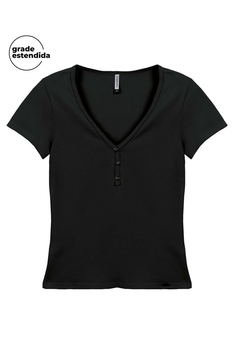 AdultoFemininoBlusas FemininoBlusa Feminina Básica Decote Botões Marialícia Preto