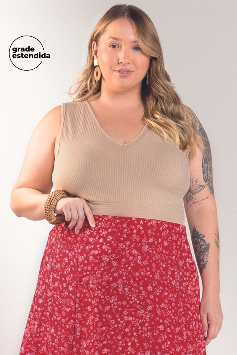 AdultoFemininoRegatas FemininoCropped Canelado Básico Marialícia Bege