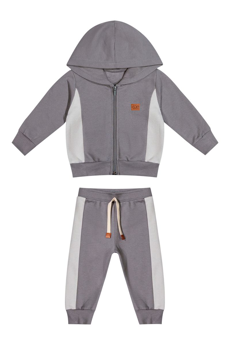 Conjunto Bebê Menino Moletom Com Recortes Colorittá Cinza REF: 70127-7031