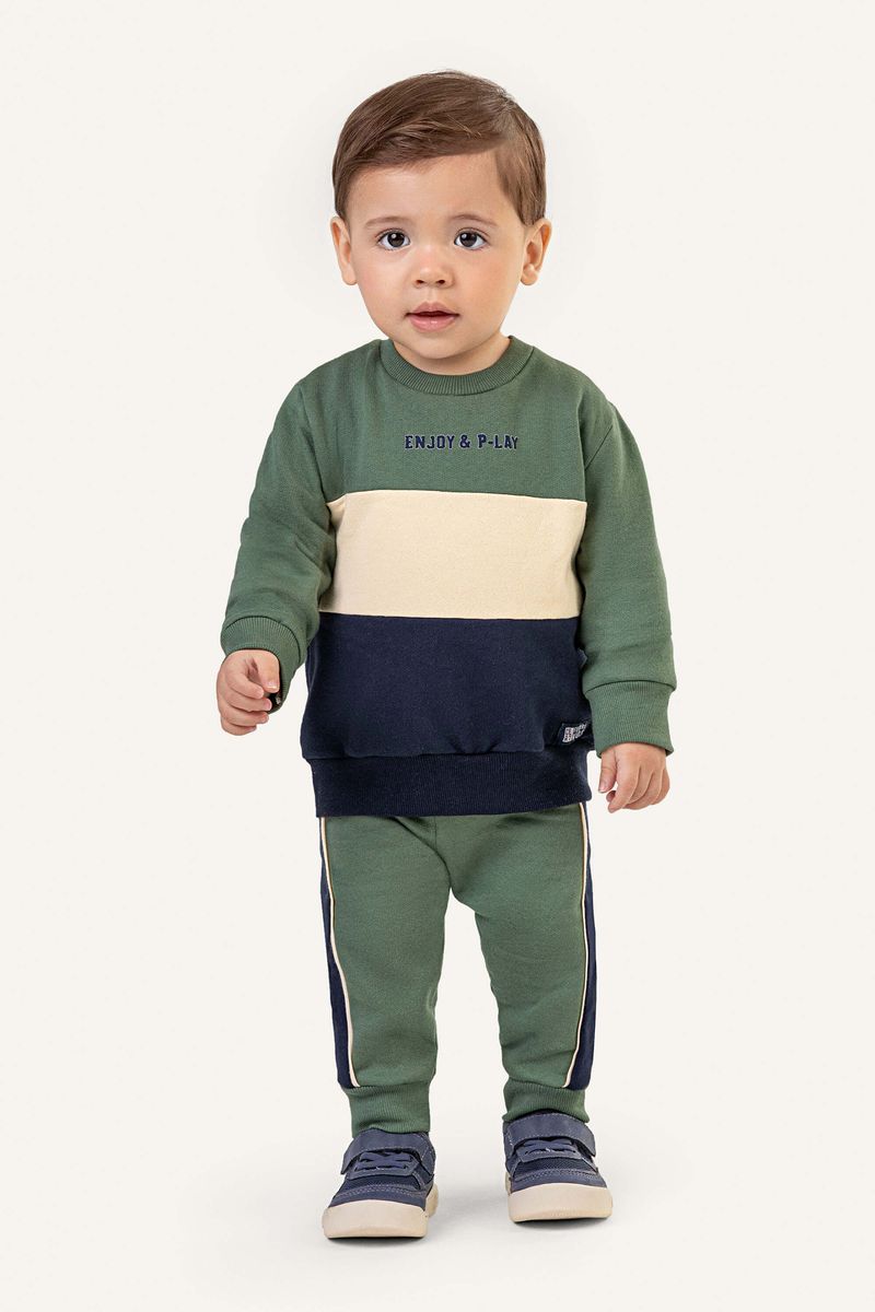 Conjunto Bebê Menino Moletom Listras Colorittá Verde REF: 70128-5098