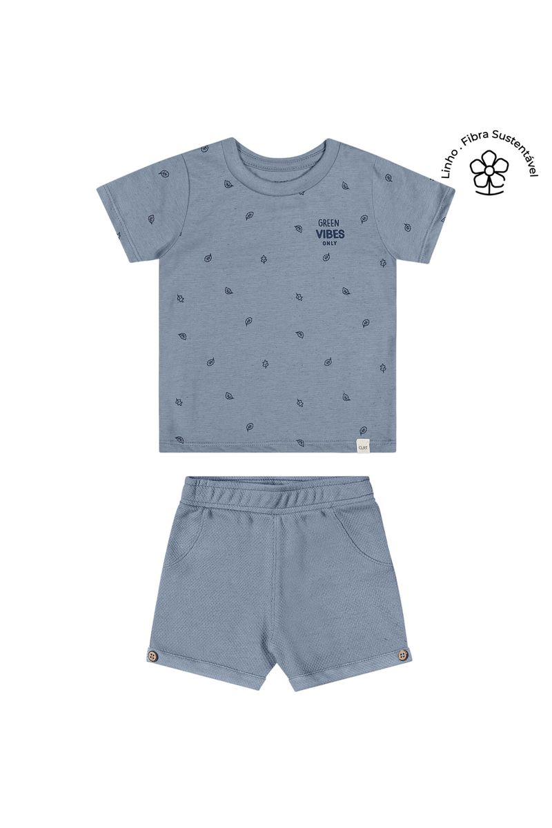 Conjunto Bebê Menino Manga Curta Folhas Colorittá Azul REF: 70148-6131