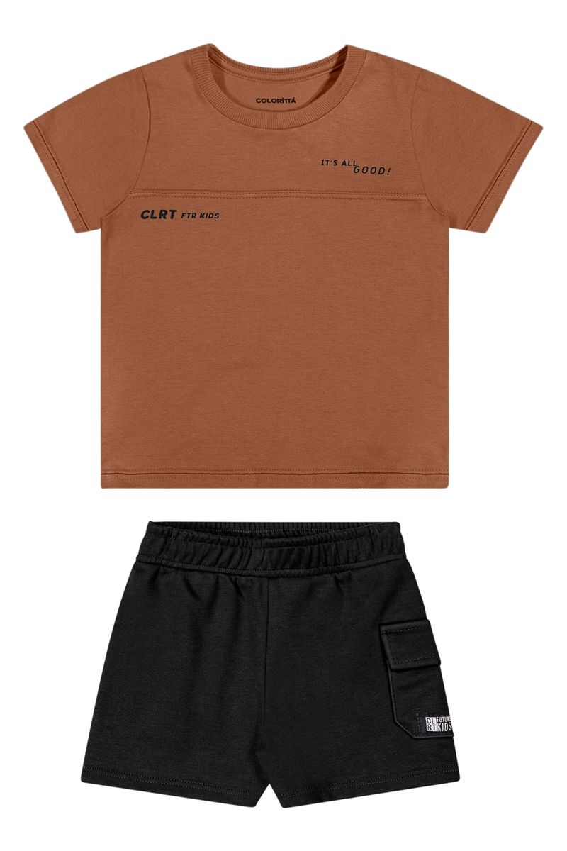 Conjunto Bebê Menino Frase Com Relevo Colorittá Marrom REF: 70150-8045