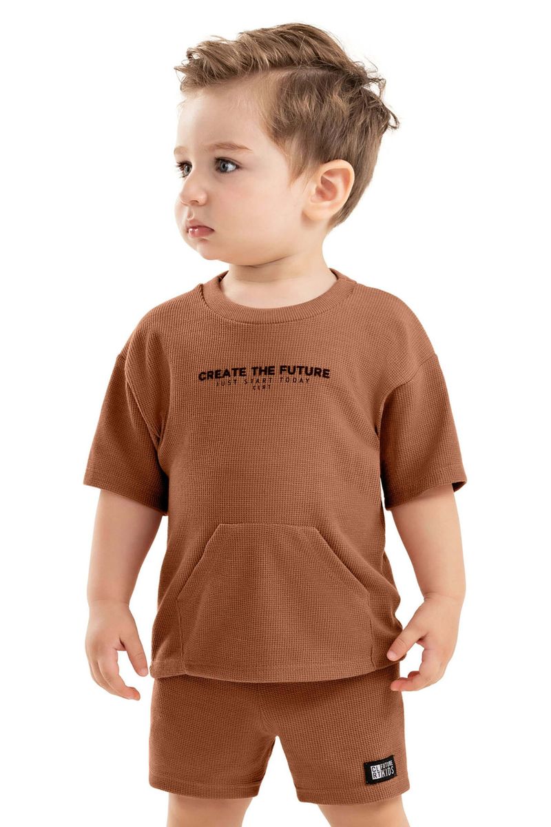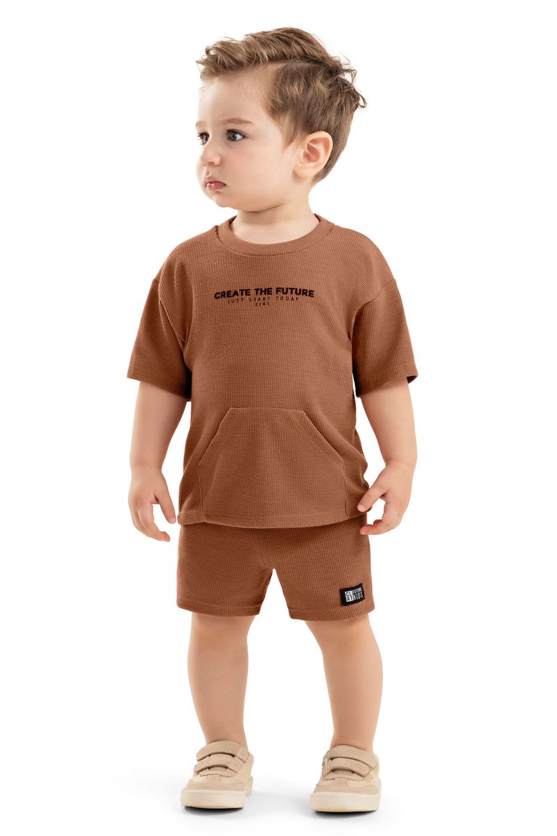 Conjunto Bebê Menino Curto Malha Tricô Colorittá Marrom REF: 70151-8045