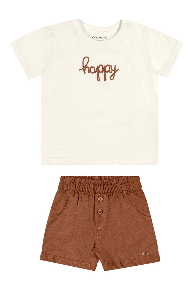 Conjunto Bebê Menino Curto Com Bordado Colorittá Bege REF: 70155-2037