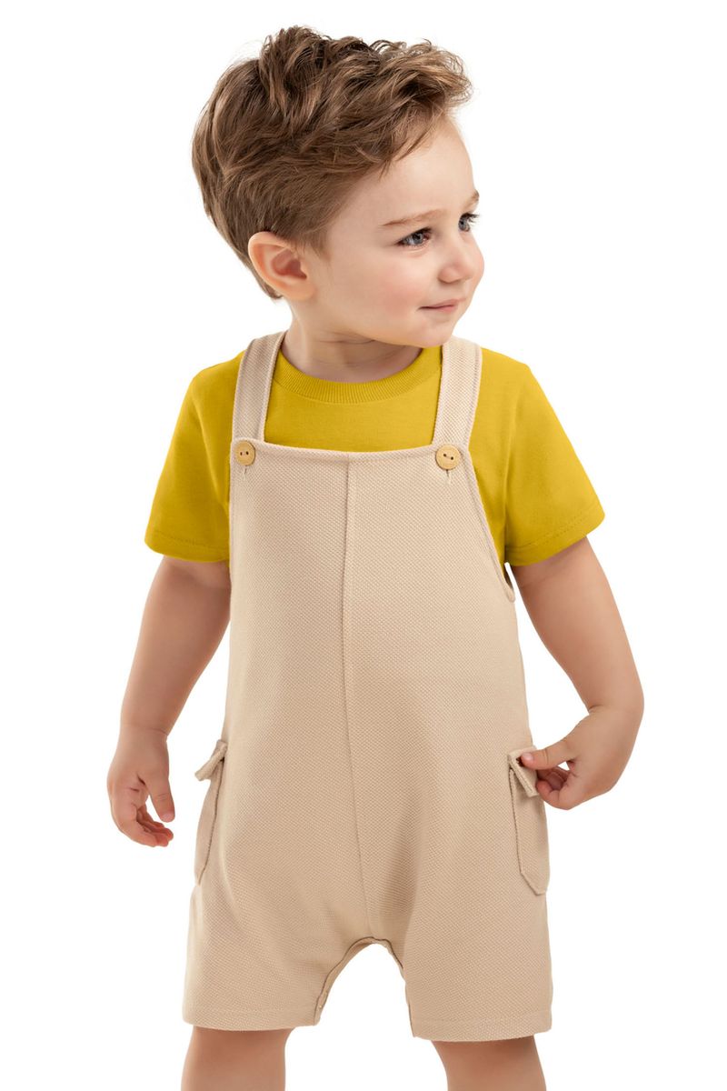 Conjunto Bebê Menino Jardineira Com Bolsos Colorittá Amarelo REF: 70157-3072