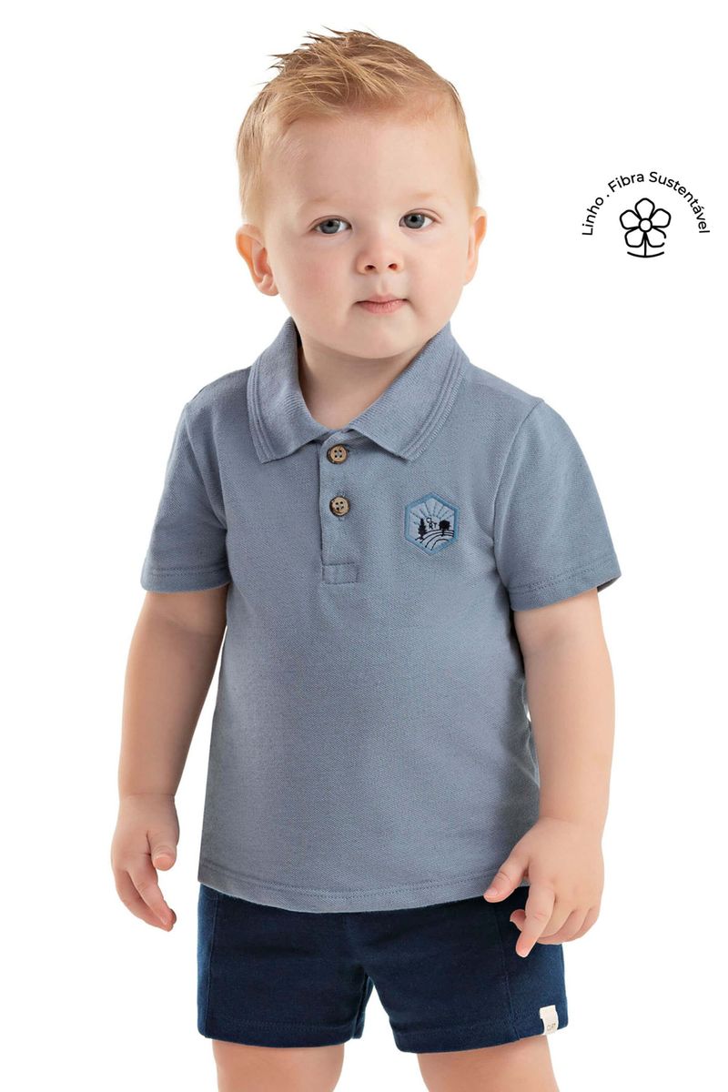 Conjunto Bebê Menino Polo Linho Colorittá Azul REF: 70160-6131
