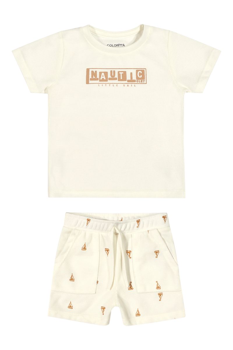 • Conjunto composto por camiseta e bermuda • Feito em malha tricô mesclada • Possui mangas curtas • Estampa com tema náutico e efeito em puff • Elástico no cós • Possui bolsos • Ideal para passeios e momentos de lazer