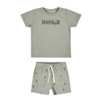 • Conjunto composto por camiseta e bermuda • Feito em malha tricô mesclada • Possui mangas curtas • Estampa com tema náutico e efeito em puff • Elástico no cós • Possui bolsos • Ideal para passeios e momentos de lazer