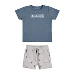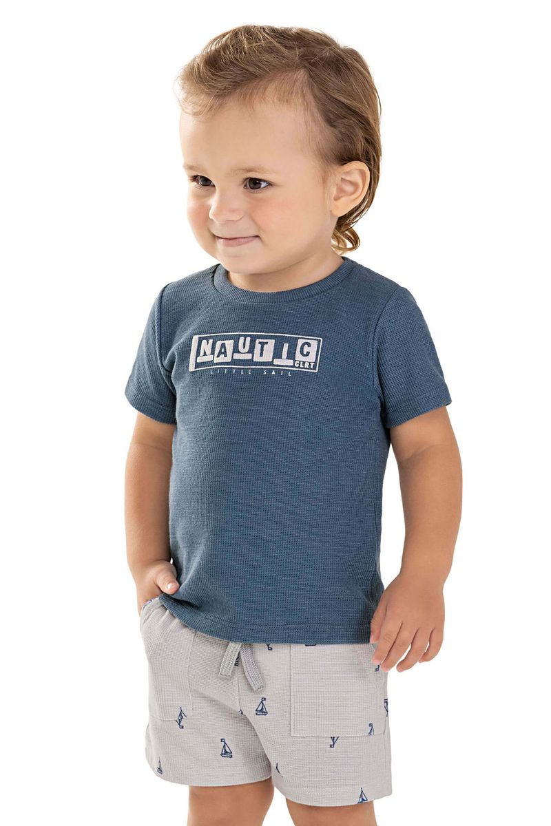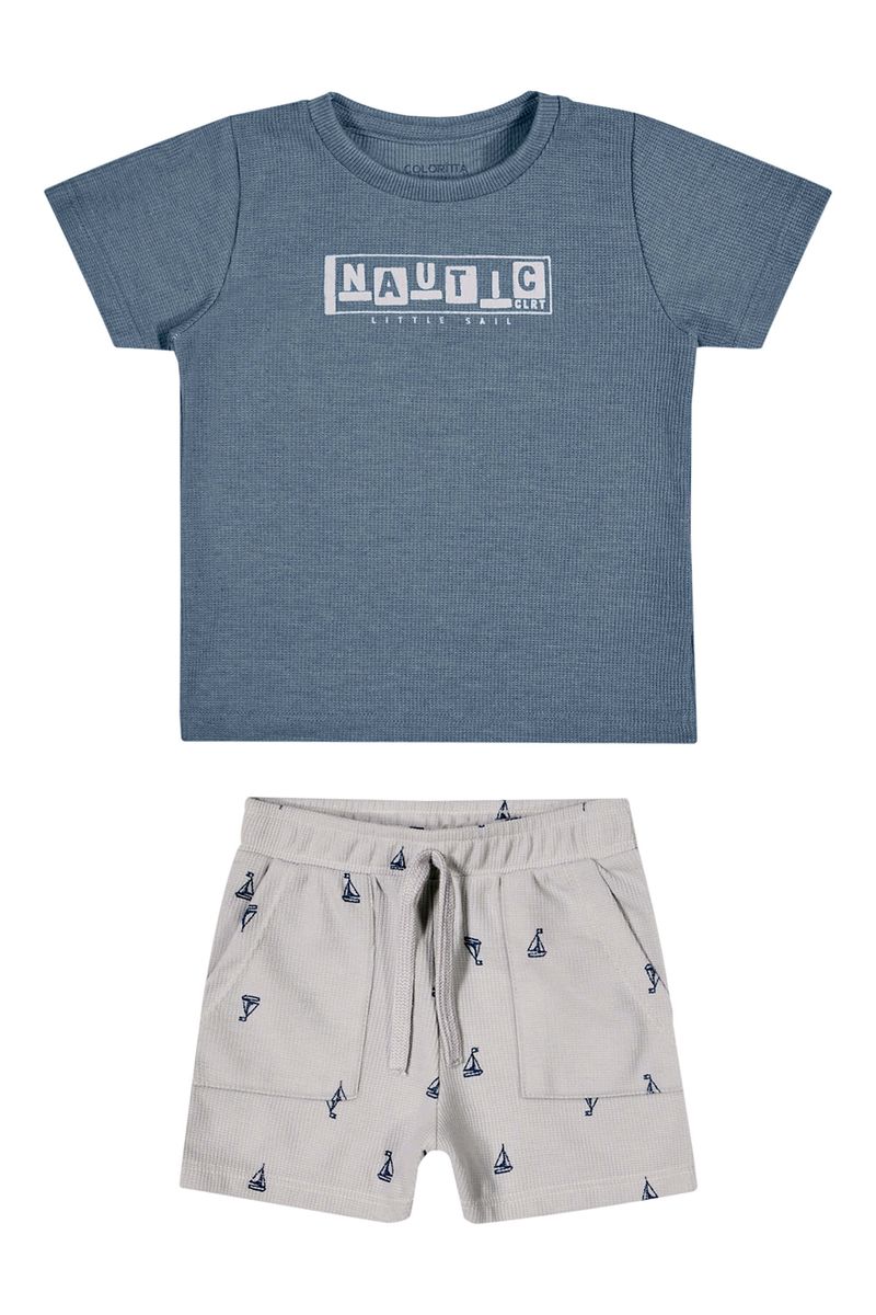 • Conjunto composto por camiseta e bermuda • Feito em malha tricô mesclada • Possui mangas curtas • Estampa com tema náutico e efeito em puff • Elástico no cós • Possui bolsos • Ideal para passeios e momentos de lazer