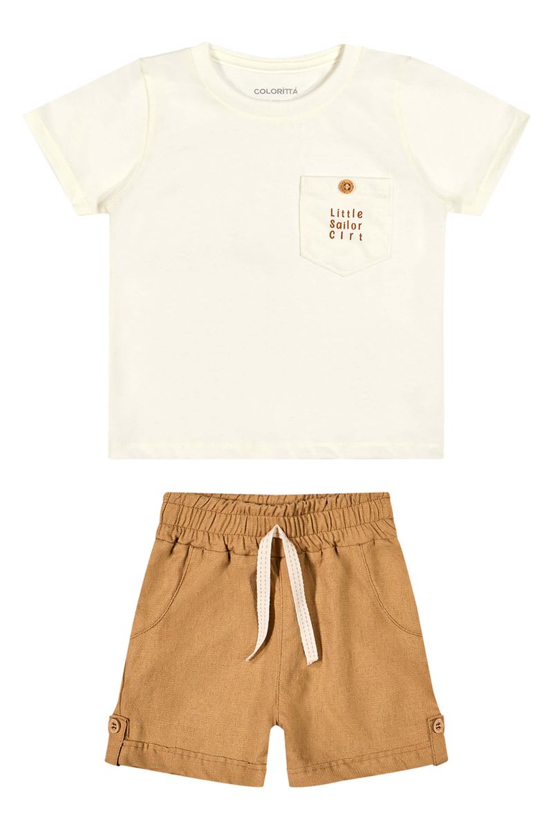 • Conjunto composto por camiseta e bermuda • Feito em meia malha e tecido linho rústico • Possui mangas curtas • Possui bolso com estampa • Elástico no cós • Ideal para dia a dia