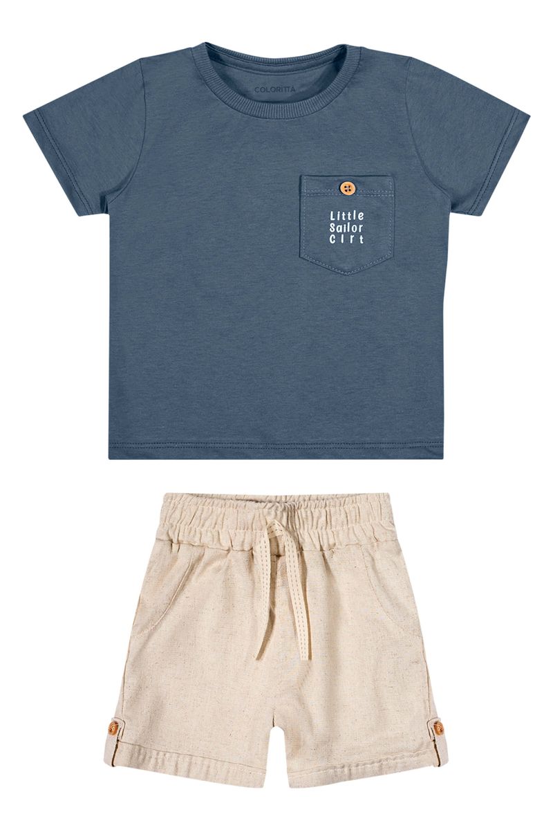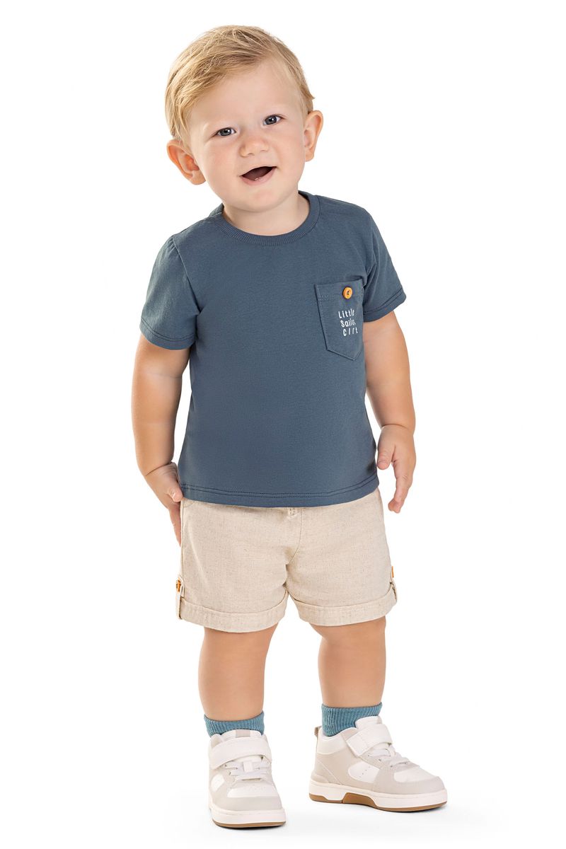 • Conjunto composto por camiseta e bermuda • Feito em meia malha e tecido linho rústico • Possui mangas curtas • Possui bolso com estampa • Elástico no cós • Ideal para dia a dia