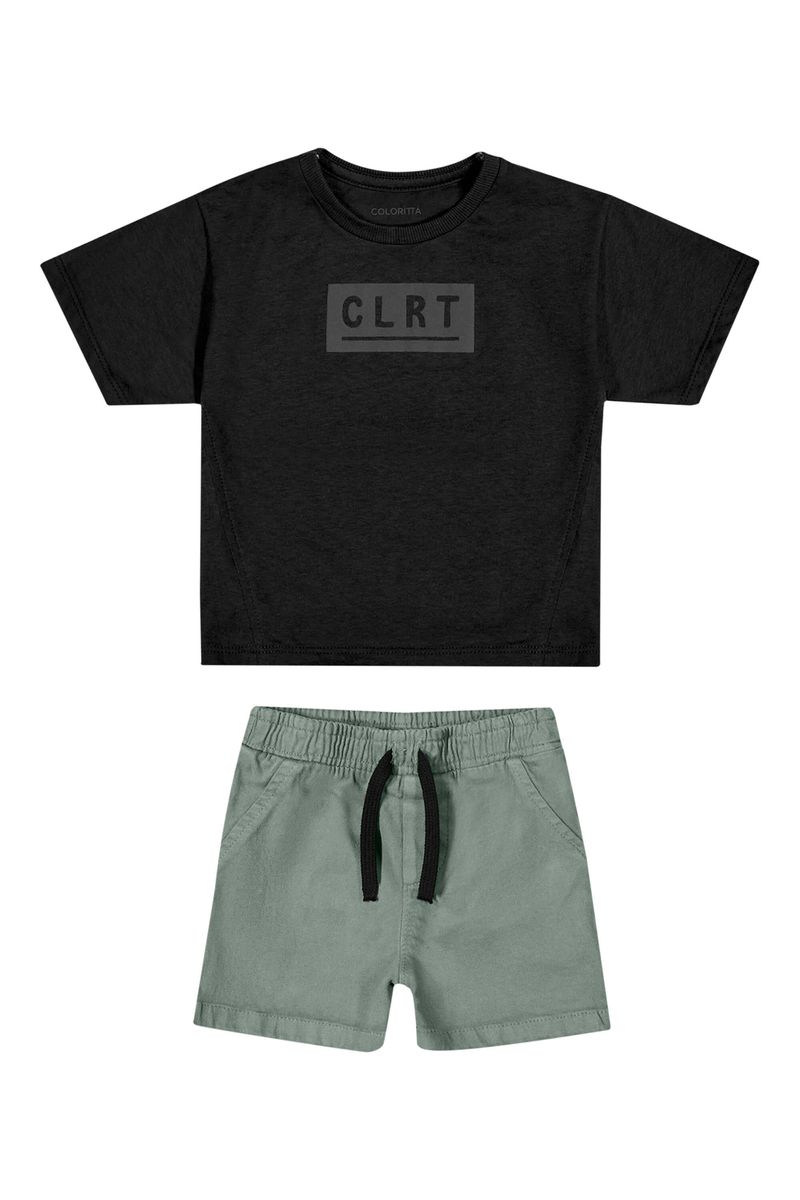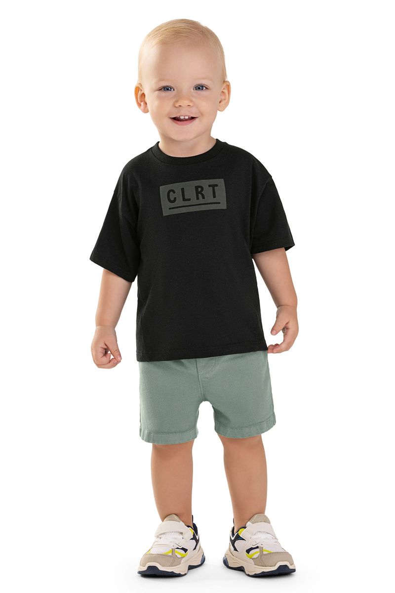 • Conjunto composto por camiseta e bermuda • Feito em meia malha e sarja com elastano • Possui mangas curtas • Estampa com relevo • Elástico no cós com cadarço decorativo • Ideal para todos os momentos do dia