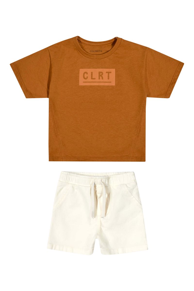 • Conjunto composto por camiseta e bermuda • Feito em meia malha e sarja com elastano • Possui mangas curtas • Estampa com relevo • Elástico no cós com cadarço decorativo • Ideal para todos os momentos do dia