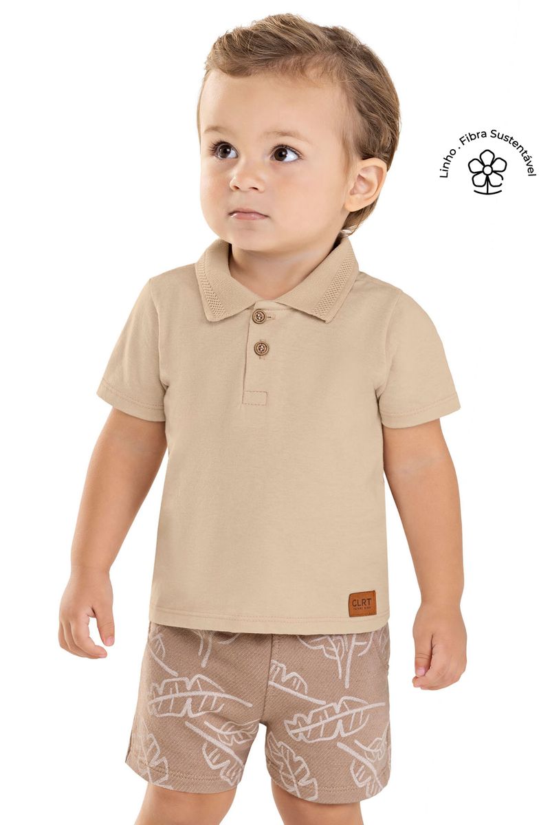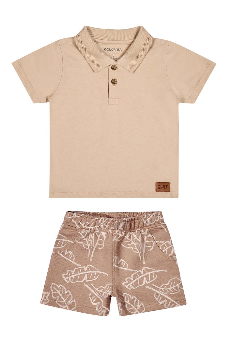• Conjunto composto por camisa polo e bermuda • Feito em meia malha e moletom eco linho • Possui gola em retilínea trabalhada e abertura em botões • Elástico no cós • Estampa de folhas • Ideal para ocasiões especiais e encontros em família
