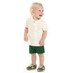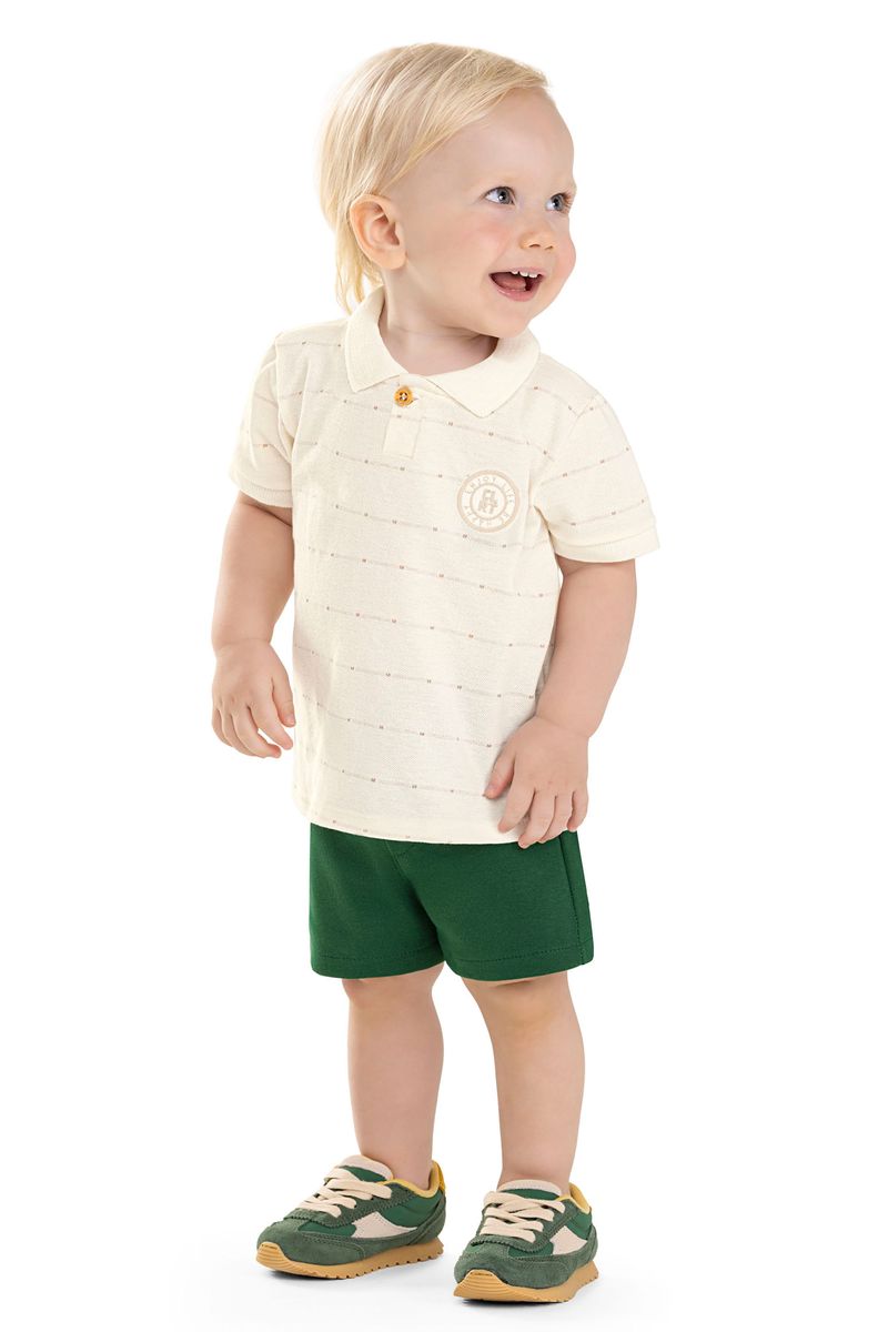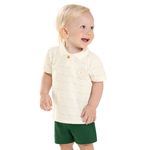 • Conjunto composto por camisa polo e bermuda • Feito em piquet trabalhado e moletom ponto roma • Possui mangas curtas • Possui abertura em botão • Com padronagem listrada e detalhe bordado • Elástico no cós • Ideal para eventos especiais