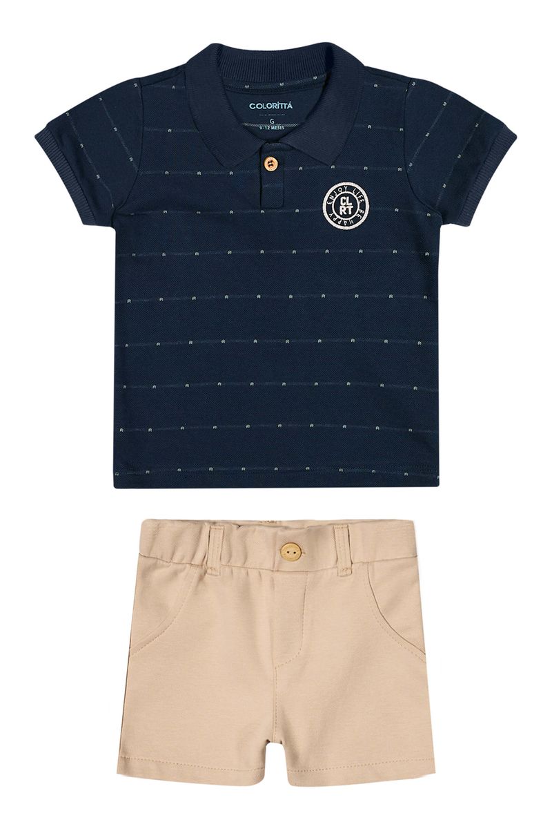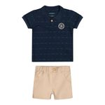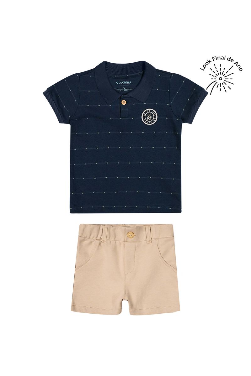 • Conjunto composto por camisa polo e bermuda • Feito em piquet trabalhado e moletom ponto roma • Possui mangas curtas • Possui abertura em botão • Com padronagem listrada e detalhe bordado • Elástico no cós • Ideal para eventos especiais