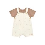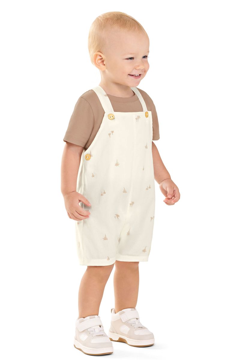 • Conjunto composto por camisa e jardineira • Feito em meia malha e tecido tricoline com elastano • Camiseta de mangas curtas • Jardineira com alças e botões • Fechamento em botões de pressão • Estampa de palmeiras • Ideal para passeios e dias de diversão