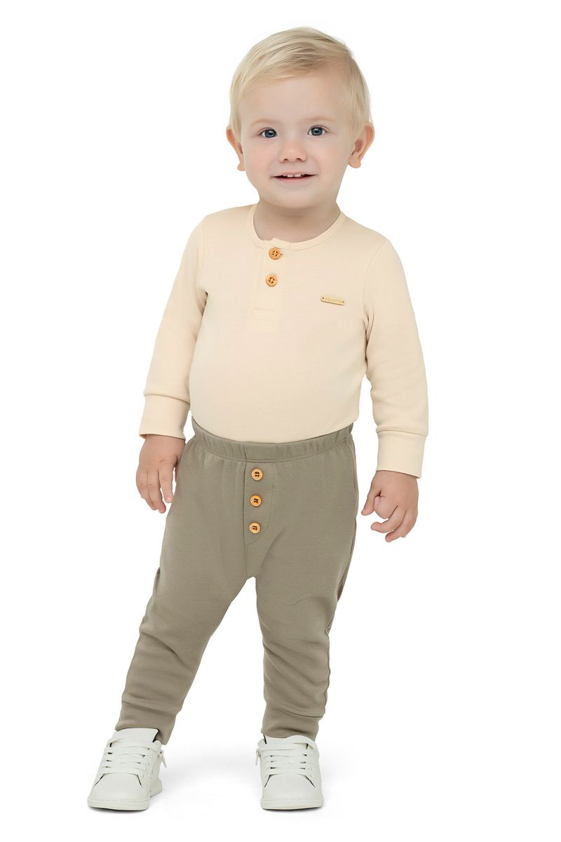 • Feito em suedine • Possui mangas longas • Botões no peitilho • Abertura em botões de pressão entre as pernas • Ideal para todos os momentos